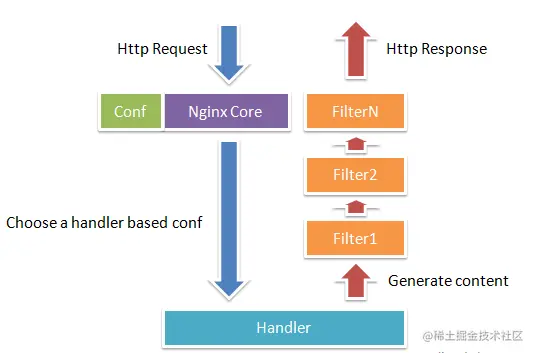 Nginx 的模块直接被编译进 Nginx,因此属于静态编译方式。启动 Nginx 后,Nginx 的模块被自动加载,不像 Apache,首先将模块编译为一个 so 文件,然后在配置文件中指定是否进行加载。在解析配置文件时,Nginx 的每个模块都有可能去处理某个请求,但是同一个处理请求只能由一个模块来完成。