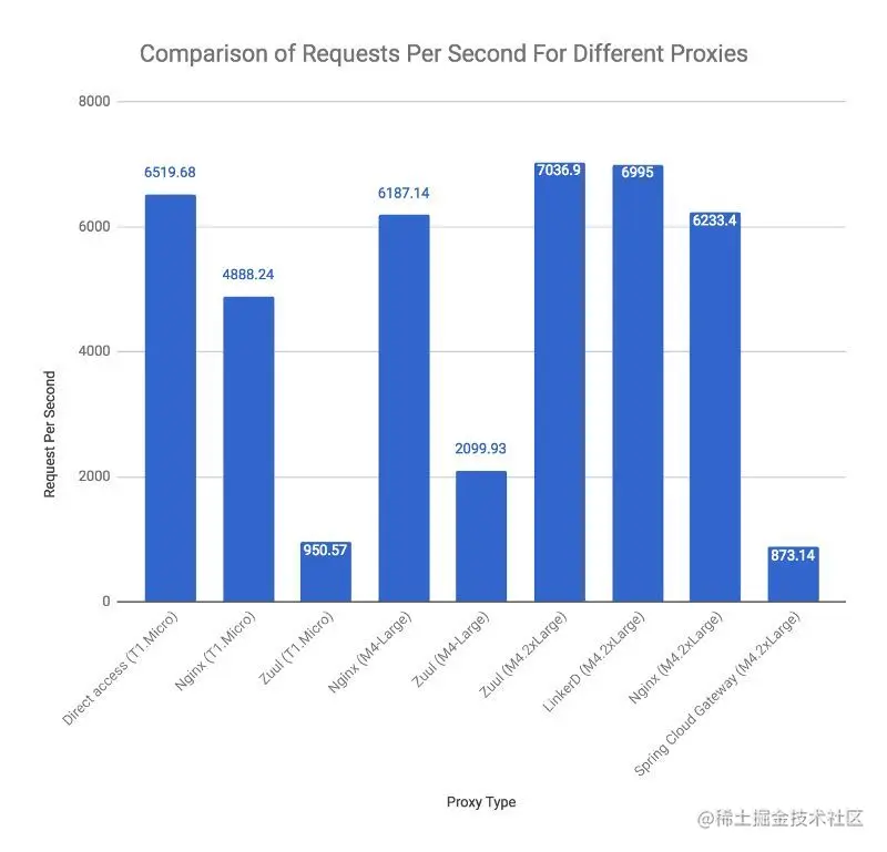 注意:由于 Turgay Çelik 博士的测试过程中是基于 Zuul 1 进行的测试,所以性能上较差,不能真实反映当前 Zuul 版本的性能状况,后续文章我会自己做实验并发布结果。