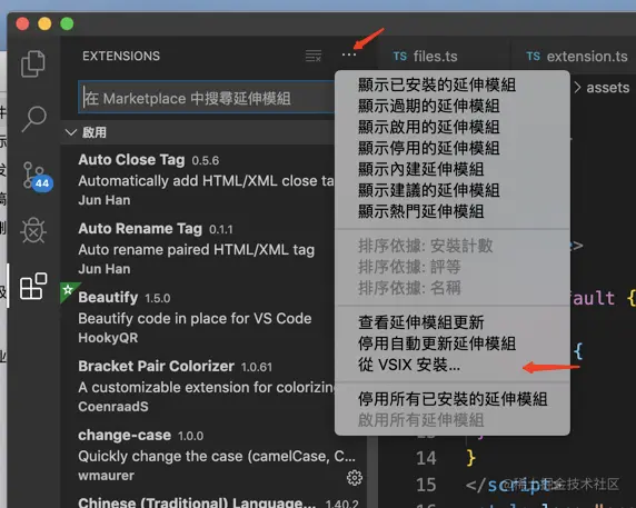 介绍下第二种,本地打包成vsix包,别人使用的时候直接发给他们。然后接收的人在插件里面安装