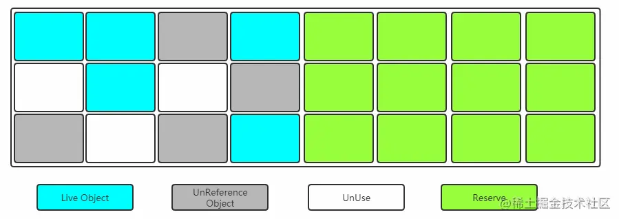 空间整合(整体上属于“标记-整理”算法,不会导致空间碎片)