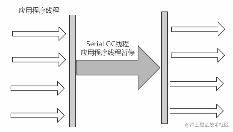 它是一种单线程的收集器,另外进行垃圾收集的时候会暂停其他线程。