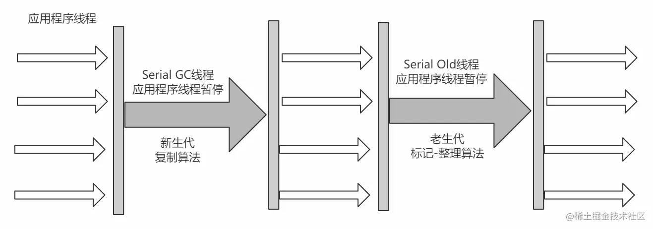 - 串行收集器->Serial和Serial Old