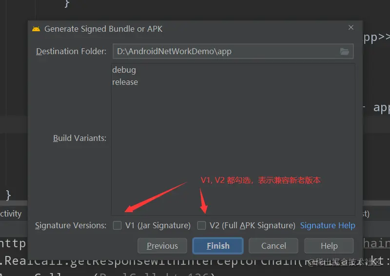 - 点击finish之后,发现,签名包已经完成,可以上传至各大渠道安装了