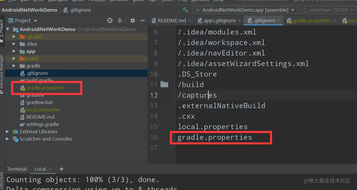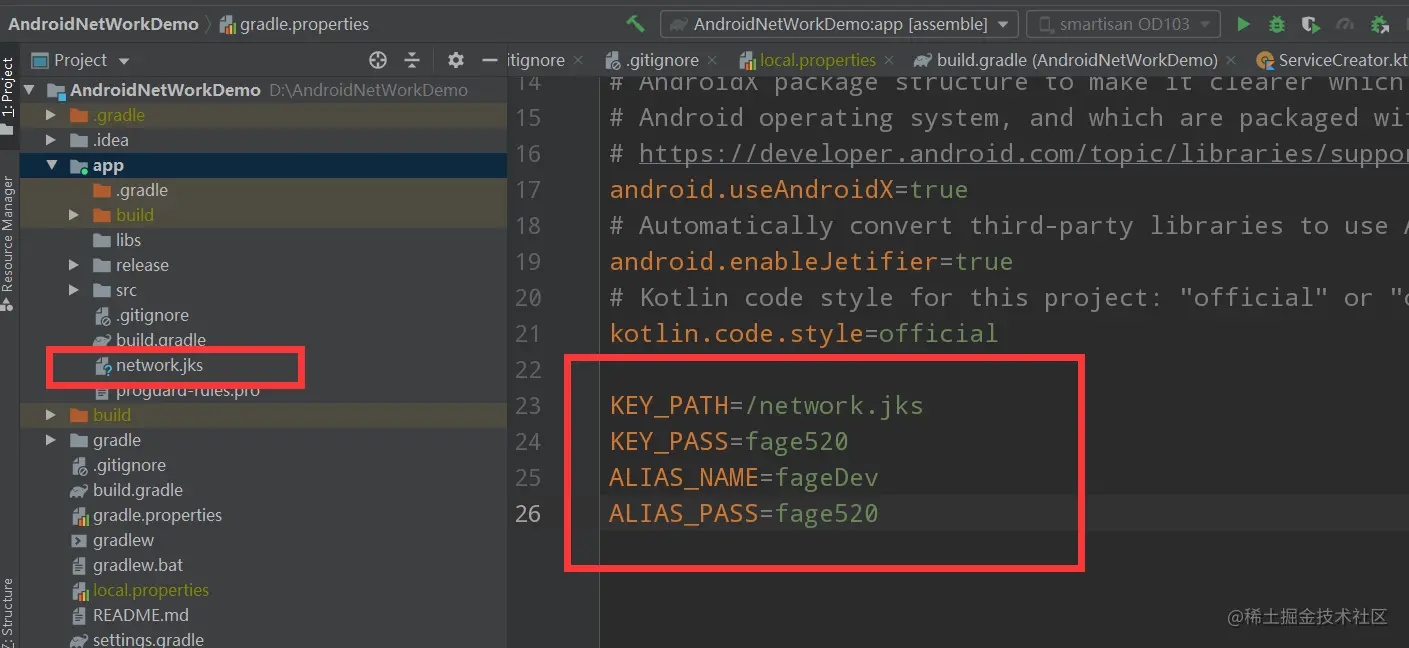 有一点需要注意,敏感信息,我们最好不要放在build.gradle中,这里我们生成一个文件存储敏感信息