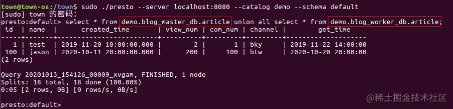 select * from demo.blog_master_db.article union all select * from demo.blog_worker_db.article;