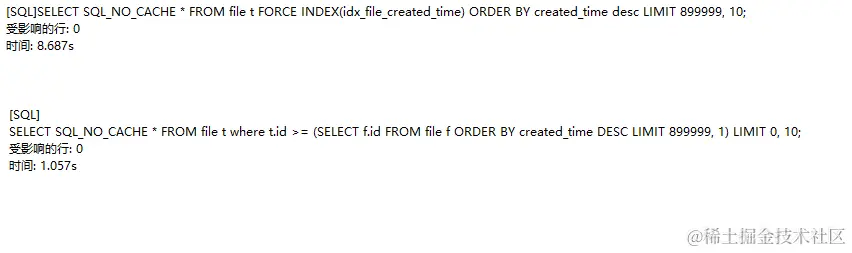 我:(假装略加思考)你确定这样写会比图一这条SQL:SELECT * FROM T ORDER BY id LIMIT 899999, 10;更快吗?在图一的SQL里已经是通过主键索引去查询数据了,你图二的SQL并没有改变原有的查找方式。如果你原有SQL是通过其他字段去排序的,用的是非主键索引,例如:SELECT * FROM T ORDER BY createdTime LIMIT 899999, 10;那么你第二条SQL的写法确实会比第一条SQL快得多,因为在MySQL里非主键索引与主键索引在查找上的区别是,非主键索引他存储的是索引列与主键列的值,查找具体的值还需要一次回表过程,而主键索引存储了是整行数据,不需要再次回表[^①]查找,减少了一次查找过程。