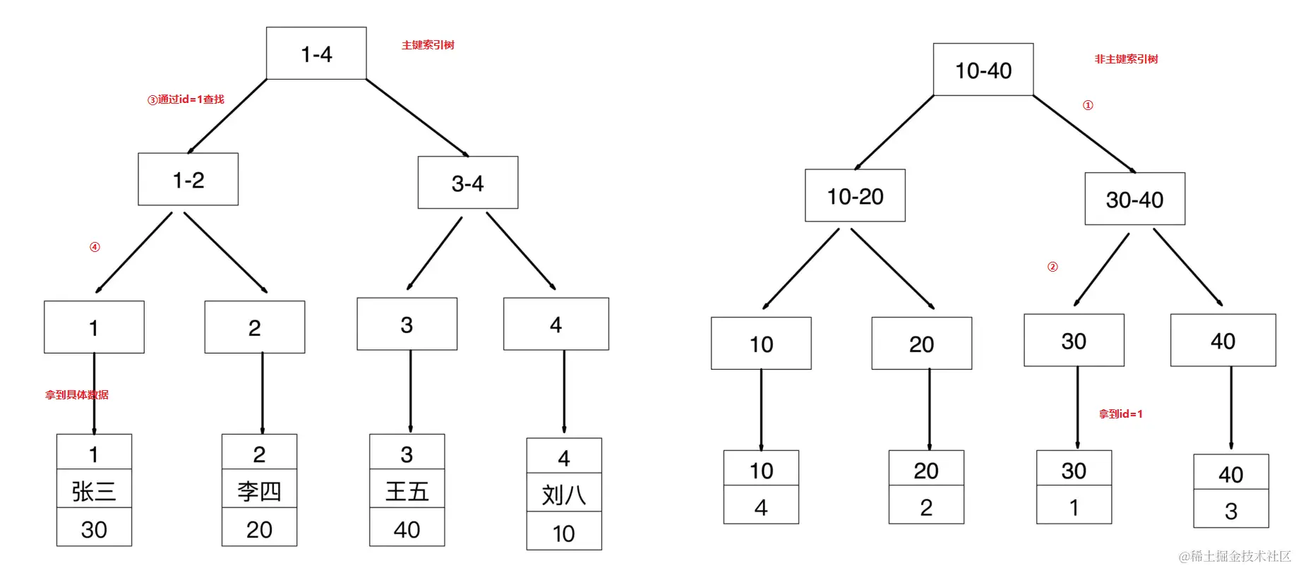指查找时通过非主键索引(非聚簇索引)去查找对应的记录的主键后,仍需要根据主键进行再一次的查找,这是MySQL的索引结构引起的。在MySQL中,主键索引(聚簇索引)存储的是一整行的数据,而非主键索引(非聚簇索引)存储的是主键列的值。