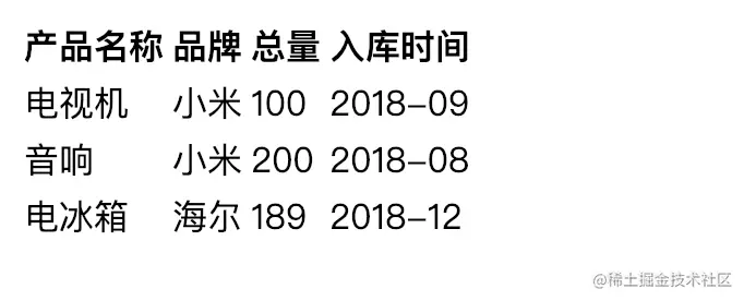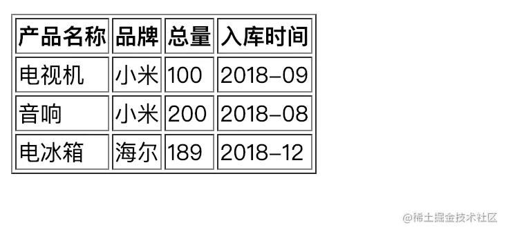 在网页中,有时候我们需要再网页上展示一些数据,比如某公司想在网页上展示公司的库存清单。如下表