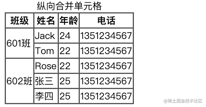 <!--rowspan中必须指定要合并的列数目,是两行还是三行等等-->