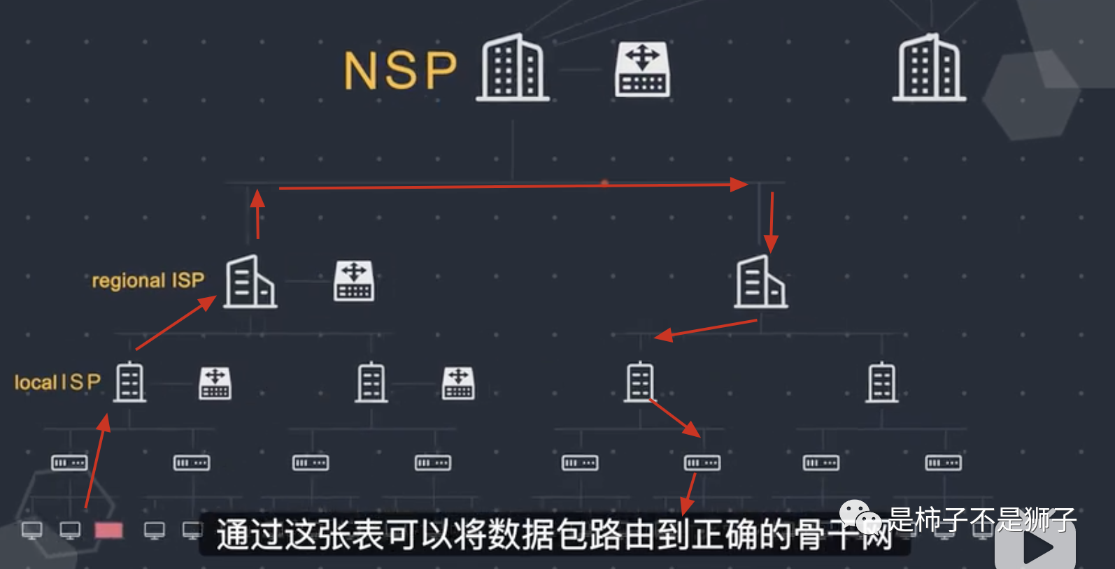具体的互联网工作流程是:你打开页面,进入百度的时候,要看见百度的首页,你发送的请求(打开百度)转换为电子信号,然后,通过电话线达到你路由器,路由器里面就会根据你的想要去百度的网站,这个路由器就会根据自己的路由表,里面记录着目的IP和转发位置,接着看看能不能根据IP到百度去,如果可以就直接送到百度的计算机上去(我们称这个为服务器),如果没有就送到路由器的默认设置转发的地方,一般先是高等级的local ISP,ISP又是什么呢,就是internet service provider网络服务提供商,我们的中国电信、移动、联通就属于这些,如果查他们的路由表还没有找到,就往更高层级,就是regional ISP找,就是区域网络服务提供商,之前的省内流量就和他们有关。还没有的话,就通过NAP,就是 network access point,网络访问点到骨干网,骨干网的路由器有最大的路由表,通过这张表就能转发到正确的骨干网,然后就这样一直转发,直到转发到百度的服务器上。然后你的请求就从电子信号转化成了数据的形式,接着百度就把要展示给你的页面转化为电子信号再传输给你,你就看到了百度一下。
