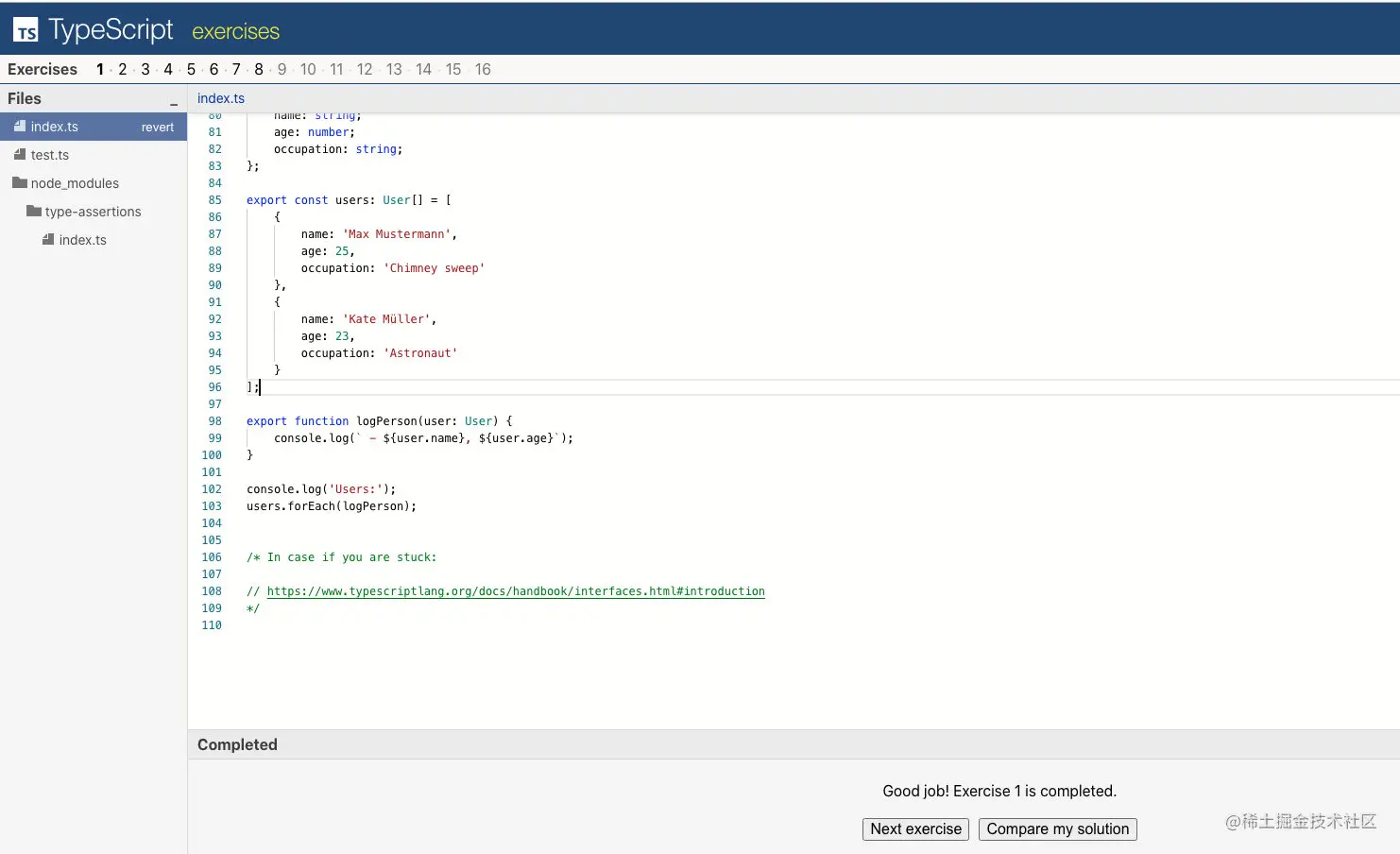 本文涉及的题目一共十六道,全部都可以在 typescript-exercises 上在线提交。