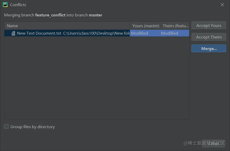 接着点击 Merge 按钮,会提示冲突