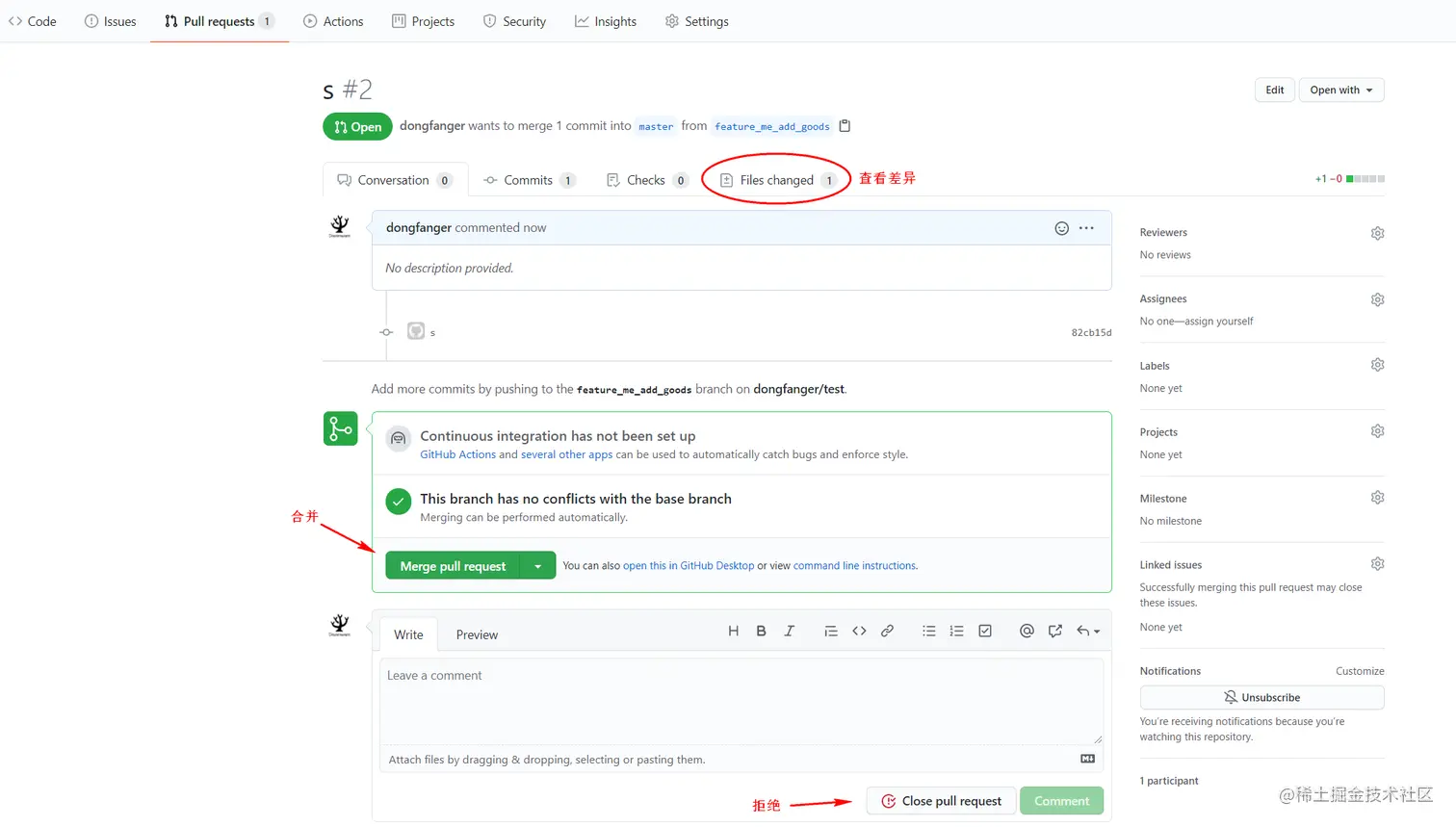 - 审核不通过点击 Close pull request 拒绝