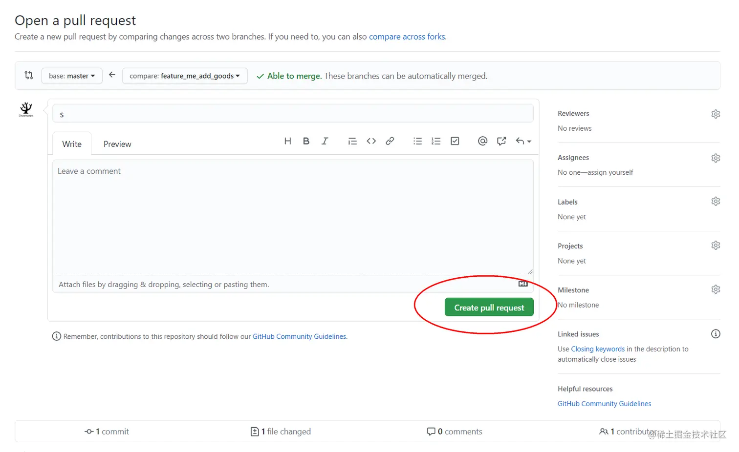 - 没有问题点击 Merge pull request 合并