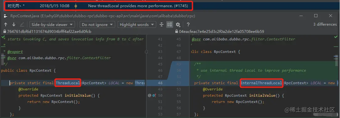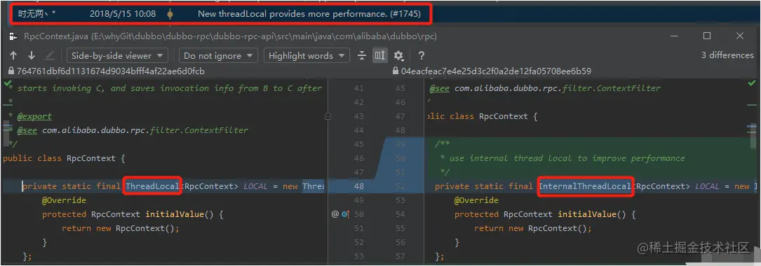 数据结构都不一样了,这其实就是这两个类的本质区别,也是 InternalThread 的性能在 Dubbo 的这个场景中比 ThreadLocal 好的根本原因。