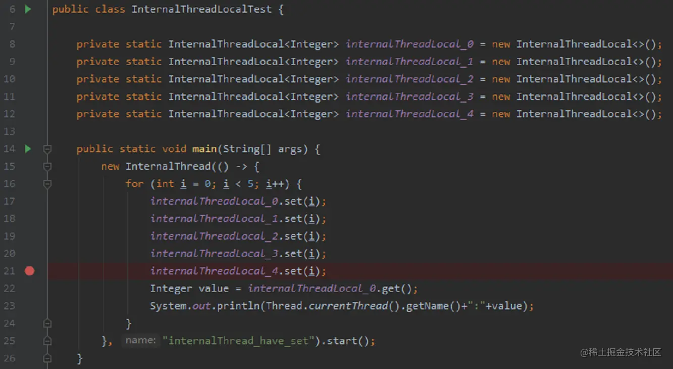 前面我们说了,要用改造版的 ThreadLocal ,必须要配合 InternalThread 线程使用,否则就会退化为原生的 ThreadLocal 。