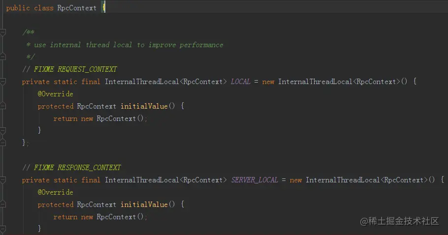RpcContext 这个对象里面维护了两个 InternalThreadLocal,分别是存放 local 和 server 的上下文。