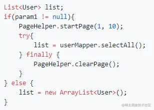 这种情况下由于 param1 存在 null 的情况,就会导致 PageHelper 生产了一个分页参数,但是没有被消费,这个参数就会一直保留在这个线程上,也就是放在线程的 ThreadLocal 里面。