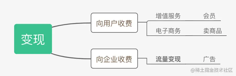 三歪思前想后,那变现的方式有什么呢?换个问法:“钱从哪里来?”。那无非两种:一、向用户收费。二、向企业收费。