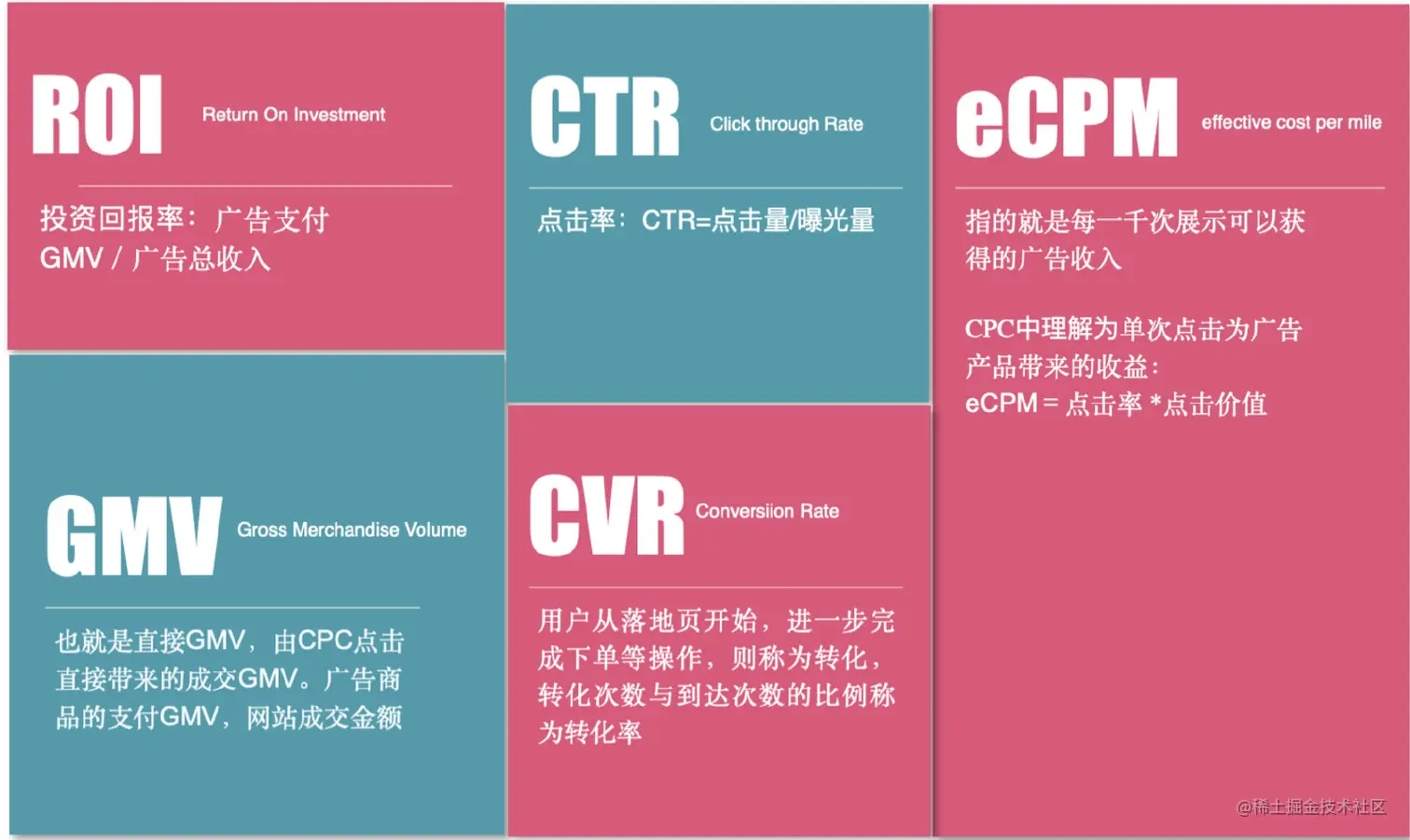 点击率、转化率在广告领域又有对应的专业名词: