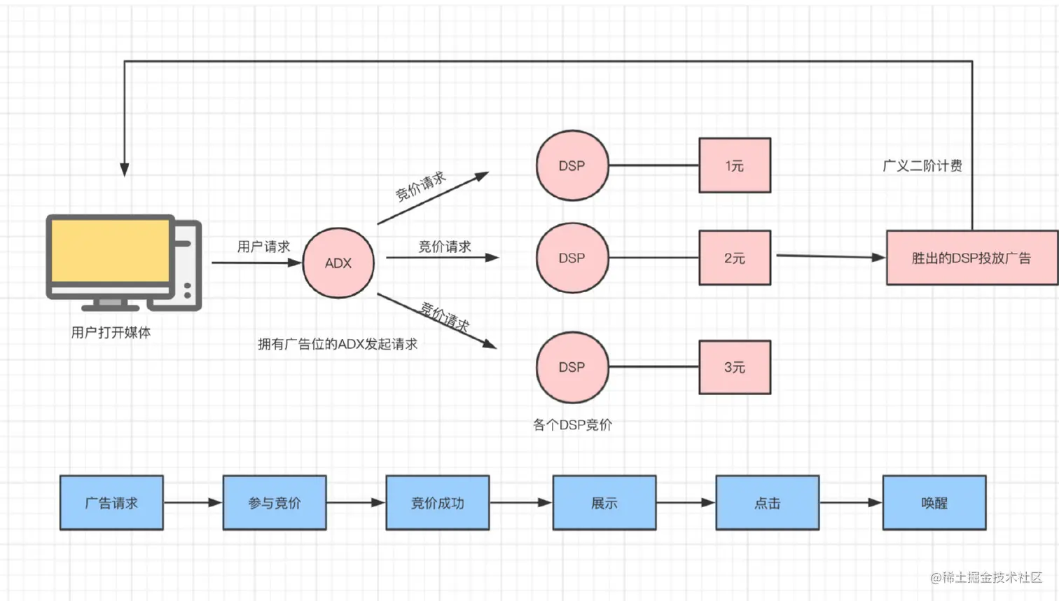 可以发现的是:上面提到的广告网络( AD Network,ADN)和搜索广告都是以竞价的方式来售卖广告位。