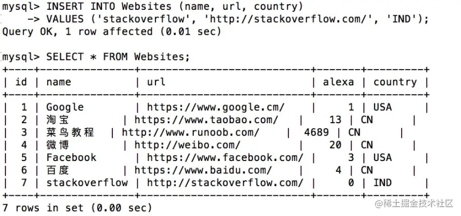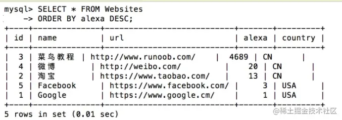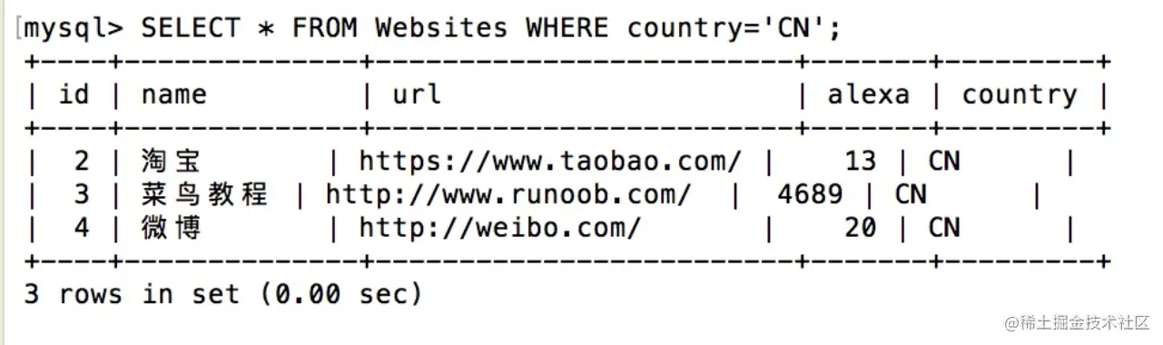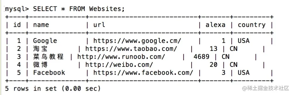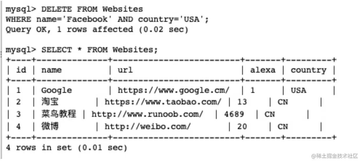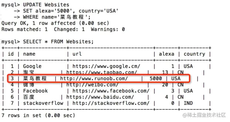 UPDATE语句尽量和WHERE语句配合使用,如果上述例子未使用WHERE语句,会将表中的所有alexa和conuntry变为5000和USA
