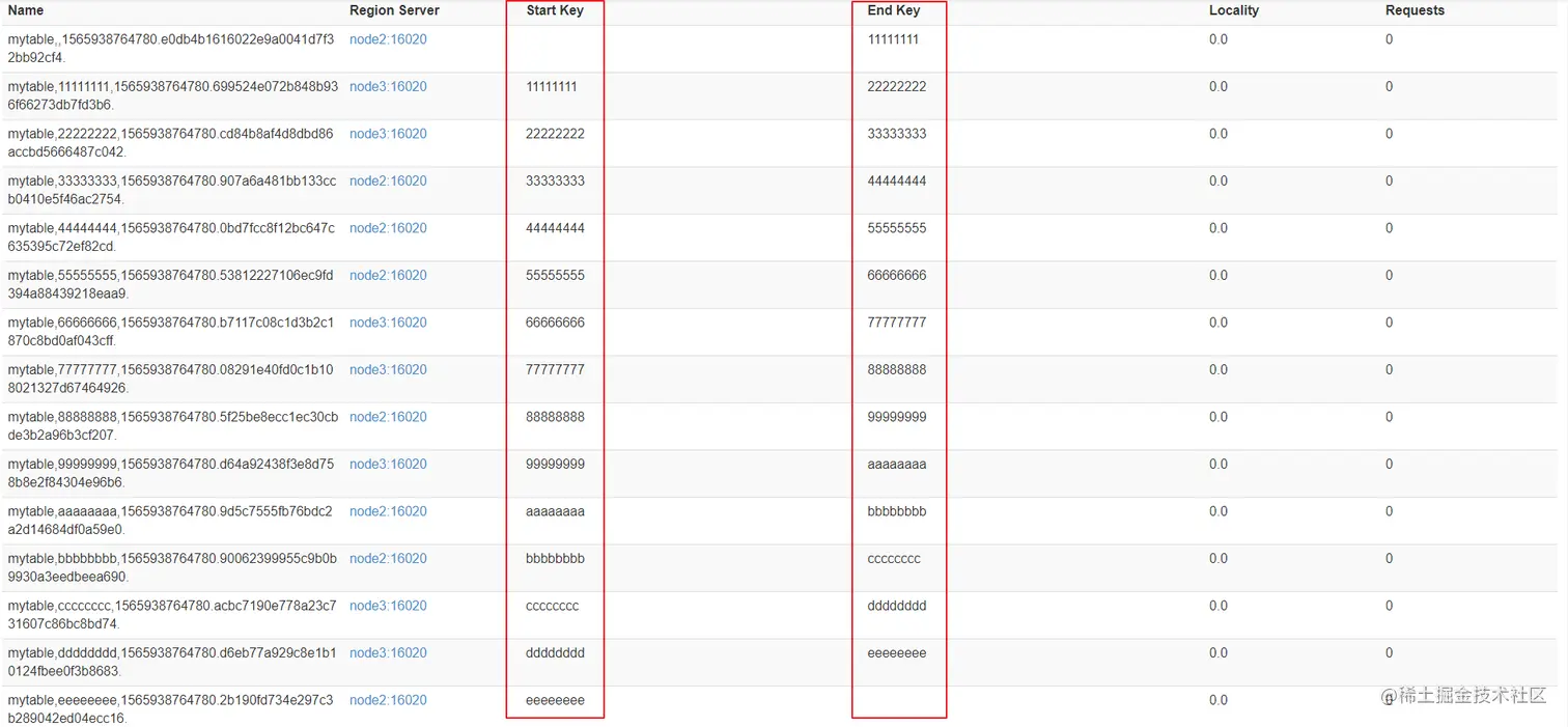 create 'student','info',SPLITS_FILE => '/kkb/install/split.txt'- 成功后查看web界面