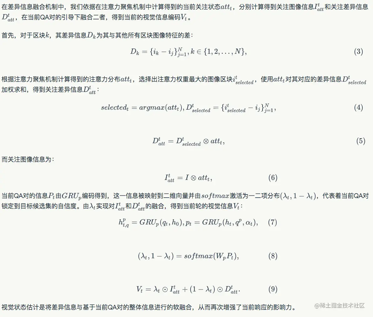- 在视觉以及融合方面的情况也是类似,现有的视觉编码方式或者采用静态编码在对话过程中一直不变,直接和动态变化的语言编码拼接,或者用QA对编码引导对视觉内容的注意力机制。因此,也不能对不同的Answer进行有效区分。而如前所述,当Answer回答不同时,会导致图像关注区域产生非常不同的变化,一般地,当回答为“是”时,图像会聚焦于当前对象,进一步关注其特点,当回答为“否”时,可能需要再次关注图像整体区域去寻找新的可能候选对象。