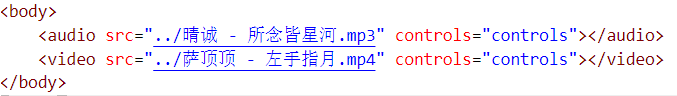 音频 控制条属性:音频加载后不会显示播放器的控制条,需要用此属性进行设置,属性值为controls