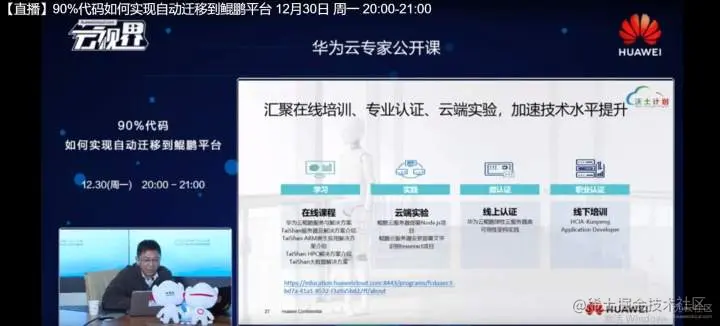 其实在鲲鹏的开发的平台里面,因为鲲鹏是空中平台,是一个新生事物,对吧?对于x86而言是一个新生事物,在这个里面我们也能感受到,随着鲲鹏计算平台的壮大,应用越来越多,需要大量的开发者去投入到平台的生态建设里面来。所以华为在这里推出了这种线上认证培训的这么一系列的技能提升的活动,包括在线课程,包括云端的实验室,包括线上认证和线下培训,希望大家能够积极参与,来共同构建华为鲲鹏的生态软件生态。