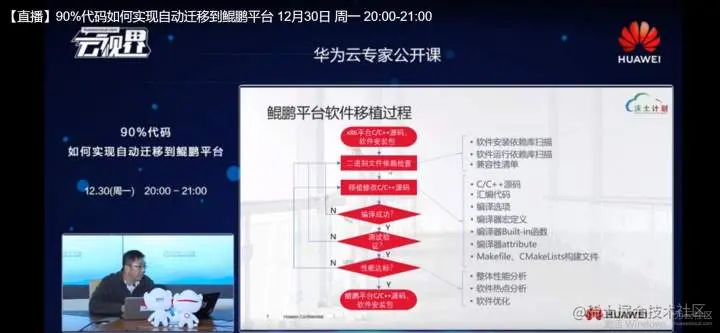 还有一种就是对于我们常用的windows平台的一种系列开发,我们也知道windows虽然一年多前可能说要支持Arm64这个架构,但实际上到现在为止他也没有宣布。其实商业上的考虑或者是其他的因素可能都考虑的比较多,尤其是这样一个大体量的公司,但是对于windows平台就是说我们进行有限度的在开元生态里面进行有限度的支持,比如说像微软的C shut,其实他的call3.0已经开源了,已经在Arm平台上能够用起来了。换句话来讲,我们也可以在鲲鹏平台上基于call3.0支持C shut。对于鲲鹏软件移植的过程,可以把它分解为这样几个步骤流程,其中最重要的就是所列到的第2步第3步以及性能达标分析这一步,我们现在提供了相应的每一步提供一些的辅助工具去帮助客户进行用户开发者进行分析进行移植。