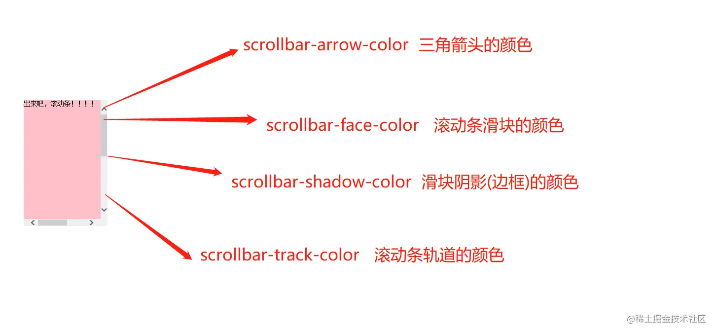 | scrollbar-arrow-color | 三角箭头的颜色 |
