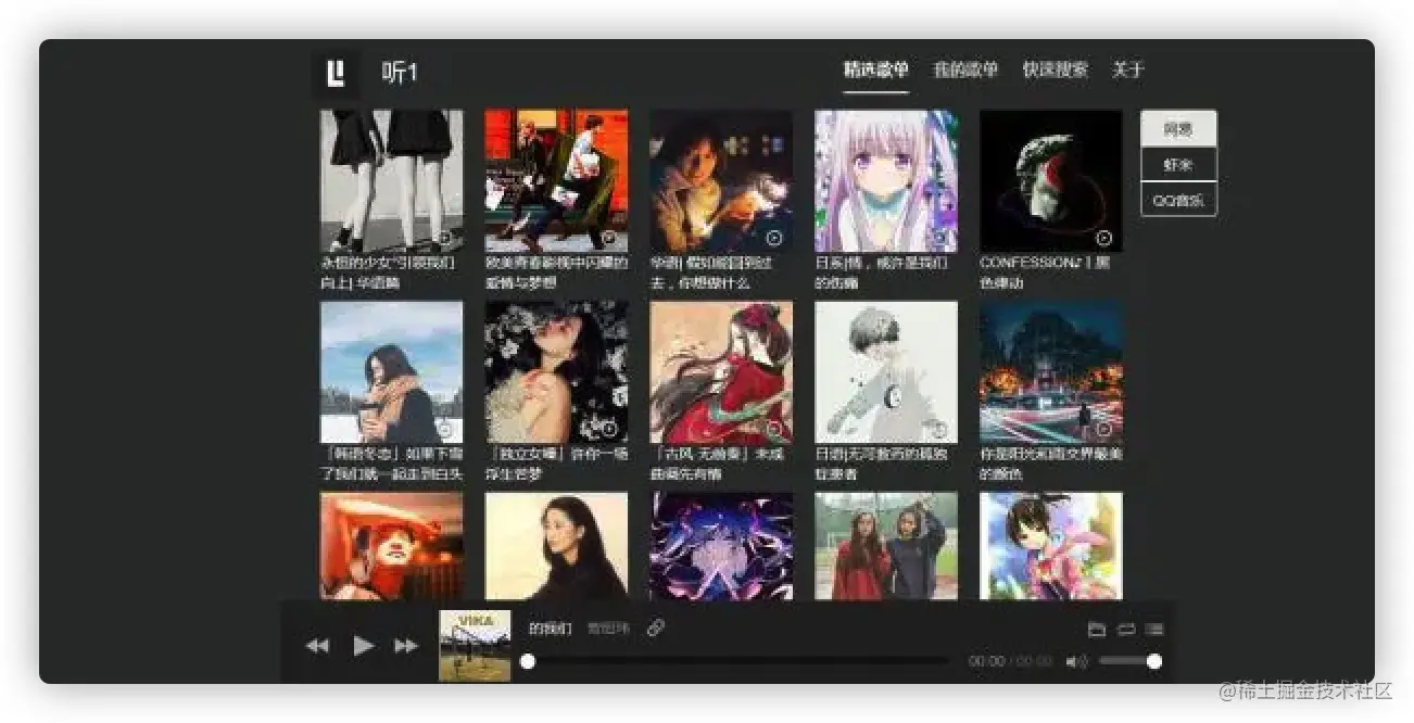 点开后右手边就是三个歌库歌单的选择:网易、虾米、QQ音乐。