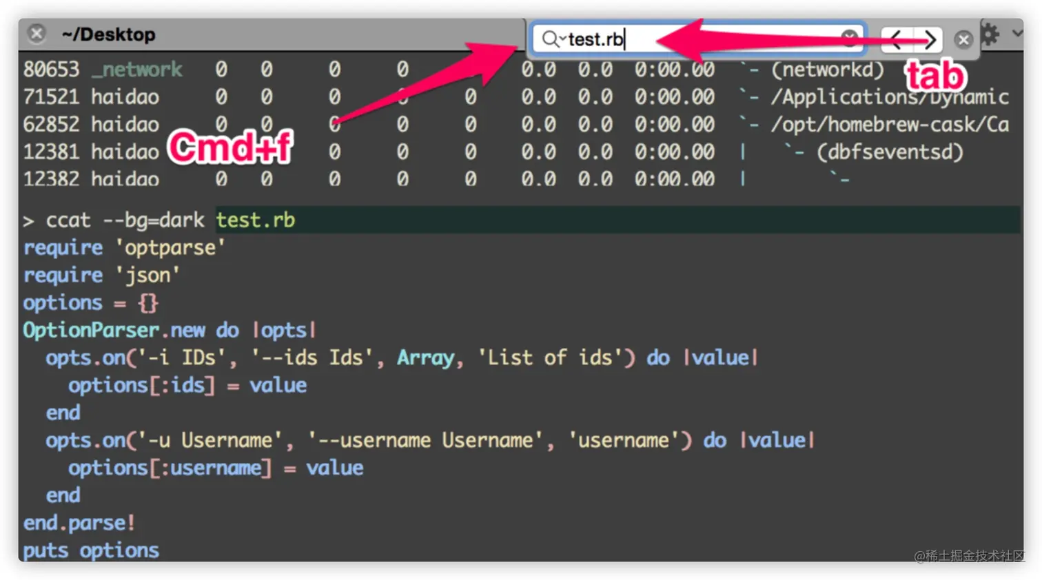 智能查找,支持正则查找:⌘+f。