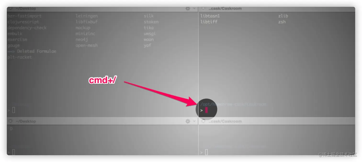 切分屏幕:⌘+d 水平切分,⌘+Shift+d 垂直切分;