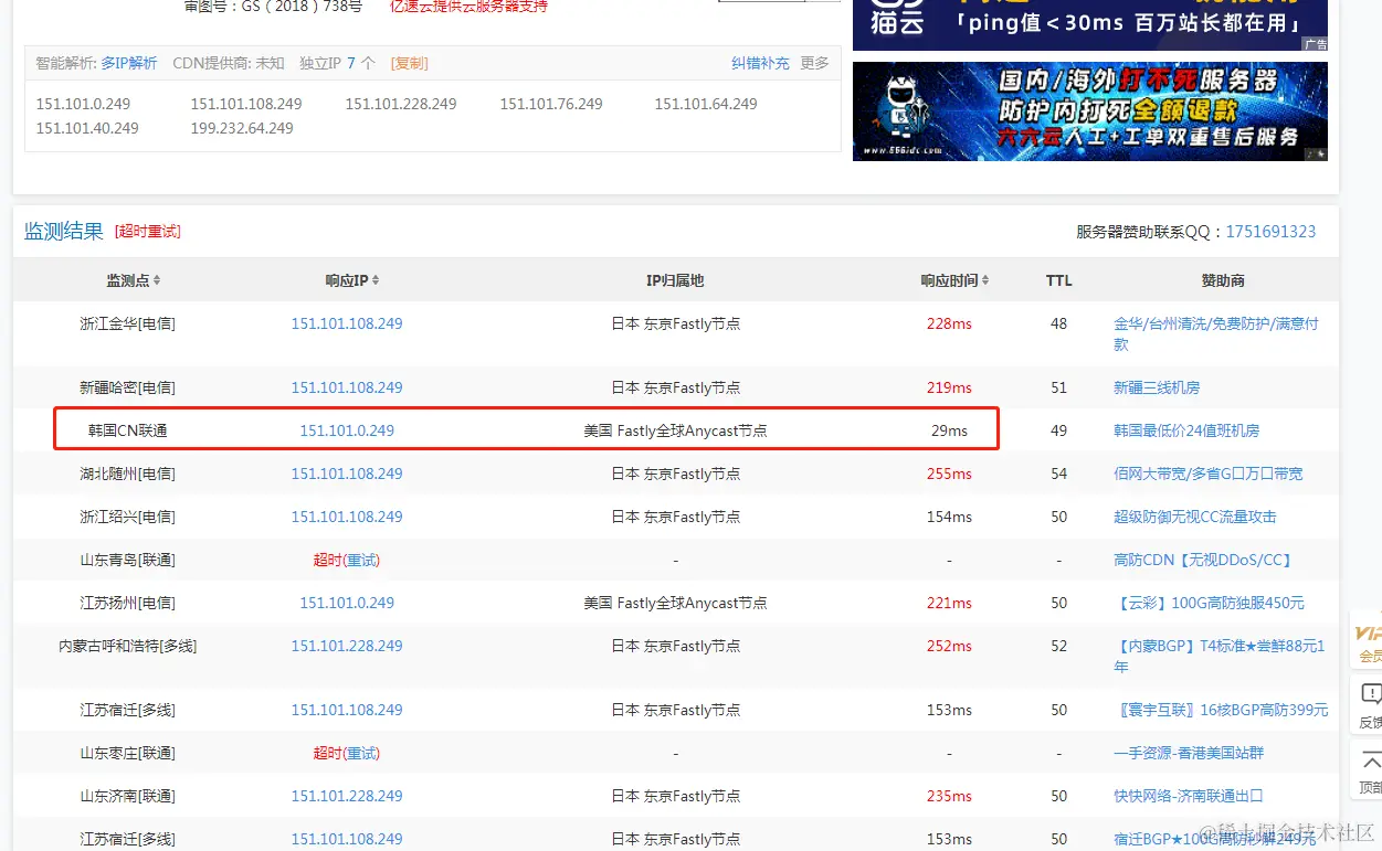 global-ssl.fastly.net 对应的ip是:151.101.0.249