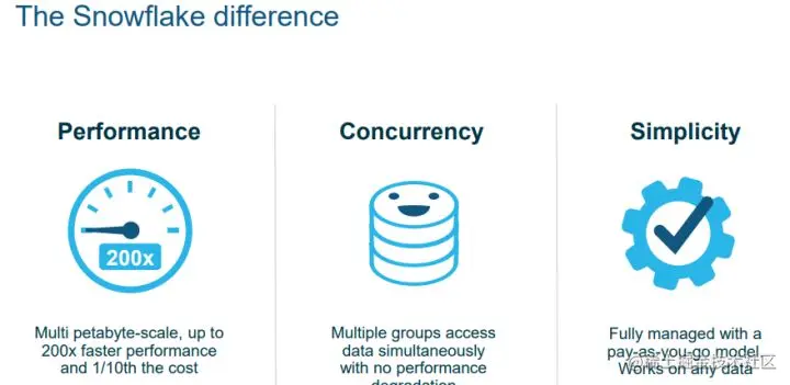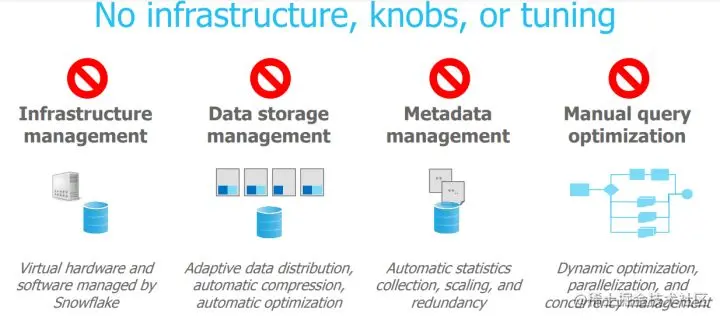 与传统查询处理相比,Snowflake没有额外的负载要处理,例如查询时不需要进行事务管理。