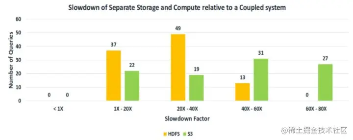 注:MPP或Hadoop体系的存算一体比存算分离架构系统有低时延的访问优势。