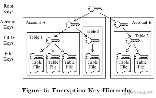 采用AES 256强加密方式分层加密,上层加密下层的key。Rootkey 保存在AWS CloudHSM(硬件)中。