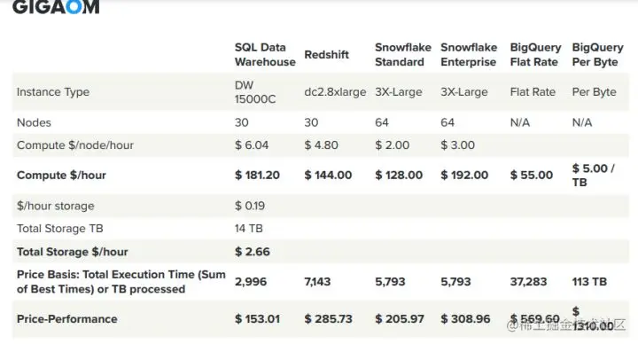 从Gigaom报告看,微软云数仓性价比第一,Snowflake排第二