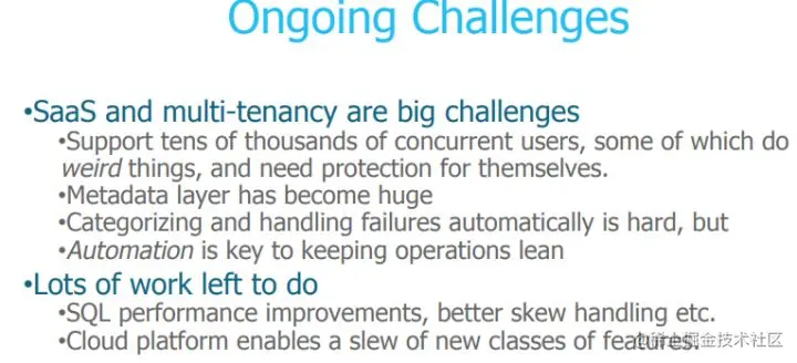 当支持上万用户的并发访问时带来巨大挑战,例如元数据层变的巨大。