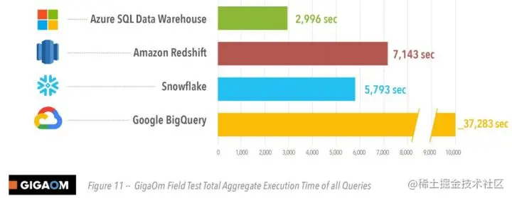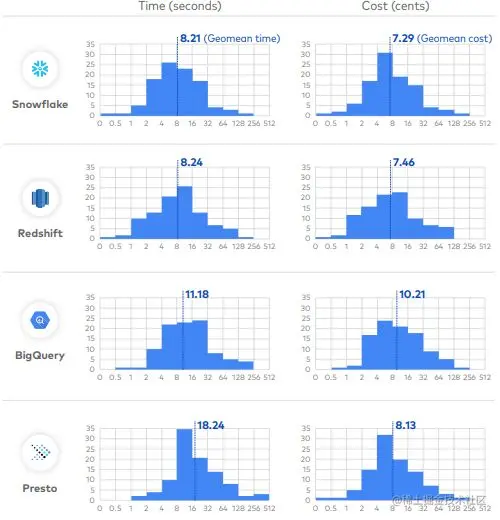 从Gigaom和Fivetran 的报告来看,Snowflake的性能都排在Google的BigQuery和Redshift之前。