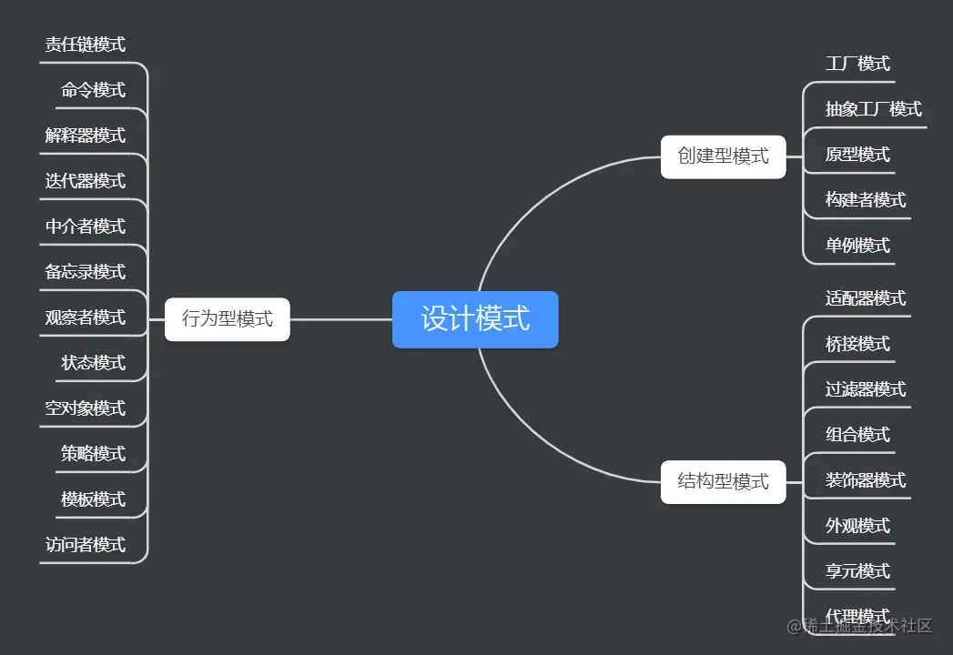 3大类之下又可以分出23种设计模式,这里就不一一赘述了。学习设计模式,死记硬背是没用的,还是要在实践中来理解。