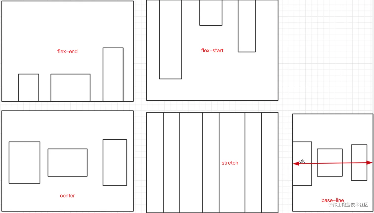 2. flex-start: 起点对齐