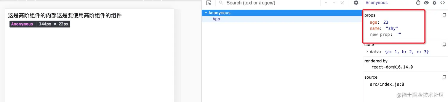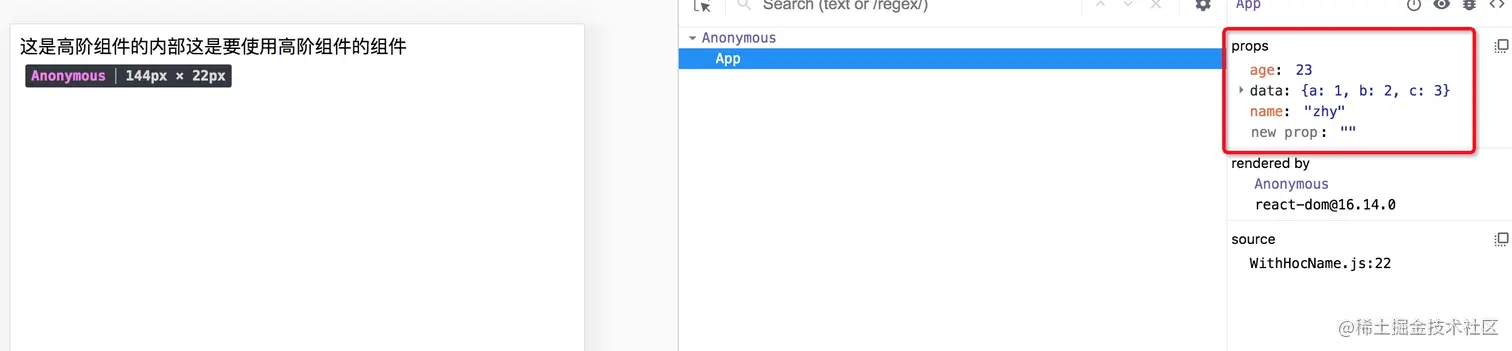 使用高阶组件后的props