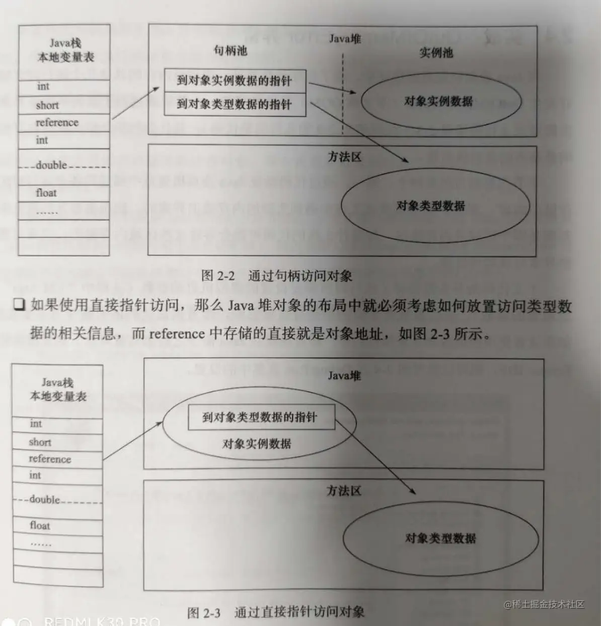 1.通过句柄访问对象,栈中的refernce存储了对象的引用,指向了句柄池中的列表,列表存了java对象实际的地址。好处就是在对象移动的时候,只需要修改句柄池的地址就可以,不需要修改refernce。 2. 通过直接指针访问对象 ,refernce存储的就是对象内存地址。它的好处就是访问快。