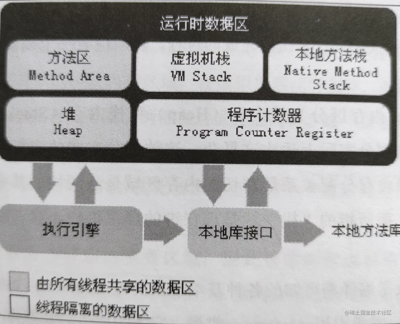 ** 当然上面的区分是JVM规范,每个虚拟机实现可能有不同的划分。有时候,我们可以粗略的把区域分为堆区和栈区。这也是程序员最关心的2个部分。**