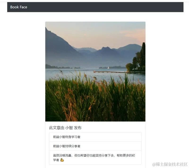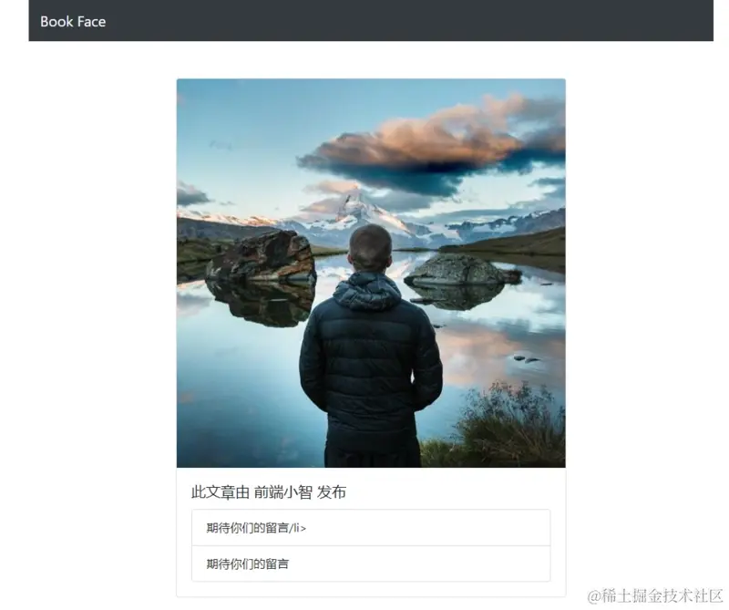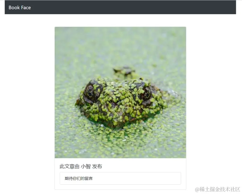上面我们添加了一个 navbar 和一个帖子的展示内容 card,运行效果如下: