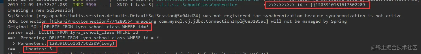 2.前后端接收到的id对应上了,没有问题! 查看sql,吓一跳,删除了三条???