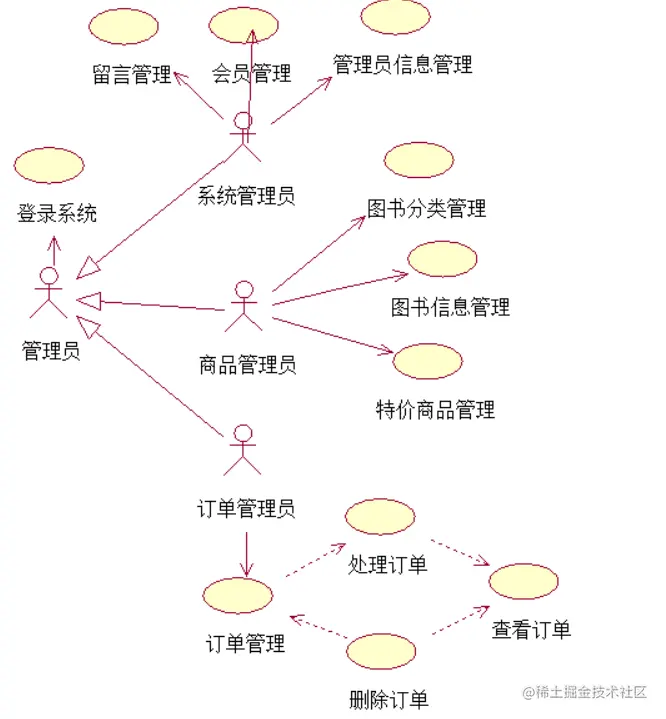Homeword11:项目需求分析 落霞不孤 2020-10-20 446 阅读1分钟 一、网上书店项目需求分析 我们小组选择的项目是网上书店,现对其进行需求分析。该项目中一共有四种角色,分别是访客,会员,管理员,网上银行。其中管理员又可以细分为系统管理员、商品管理员和订单管理员。 二、用例图 2.1 访客用例图 2.2 会员用例图 2.3 书店管理员用例图
